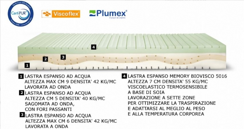 di materiali con debole sistema di distribuzione della pressione. In un materasso composto da materiali Plumex la