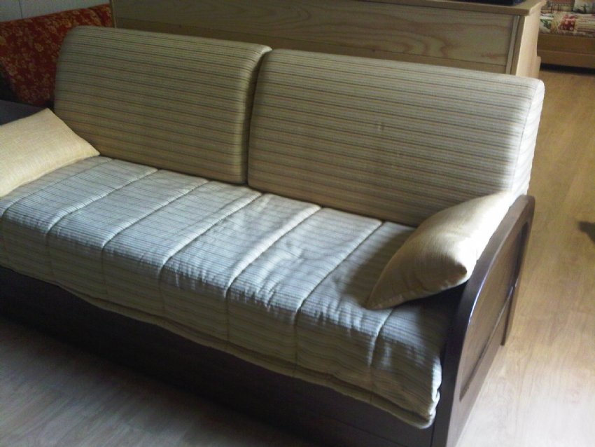 Divano letto trasversale con due letti Il secondo letto si estrae da sotto la seduta e può sollevarsi da terra facendo un matrimoniale con quello della seduta Completamente smontabile e sfoderabile ,stoffe lavabili antimacchia