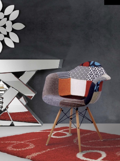 Poltrona con telaio in vero legno foderata con stoffa a motivo patchwork