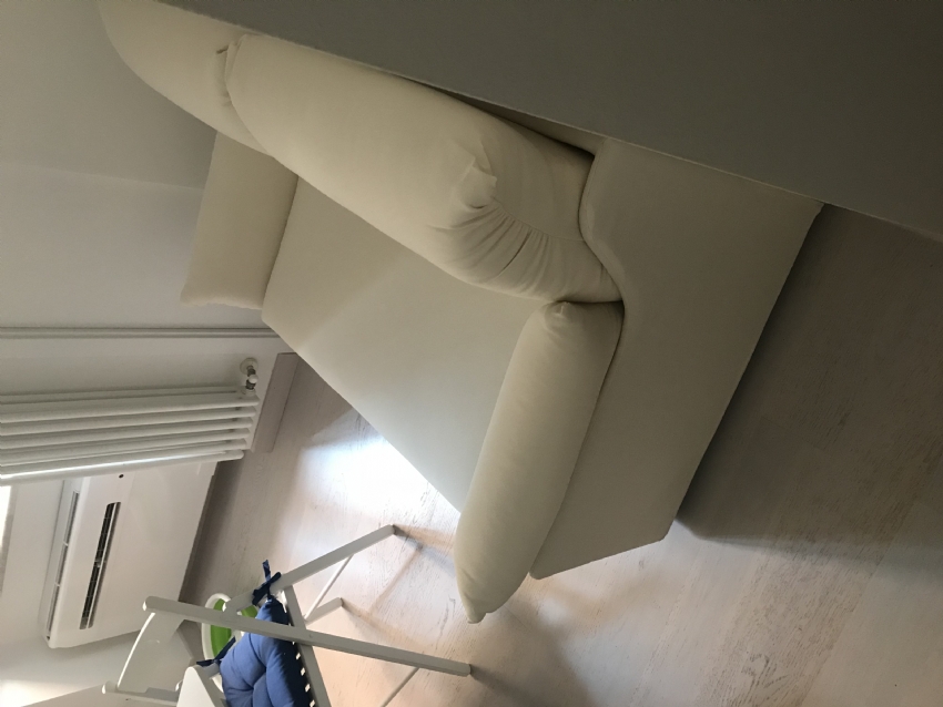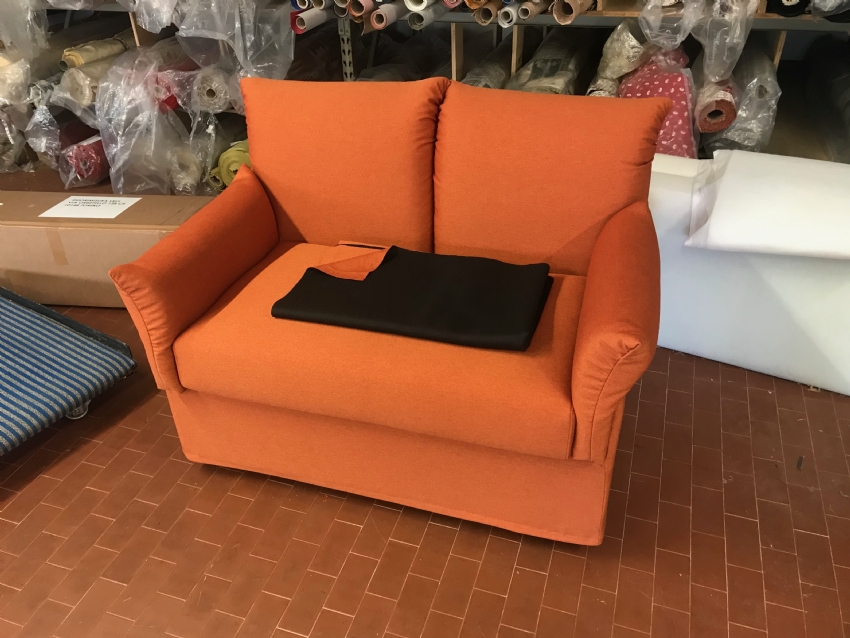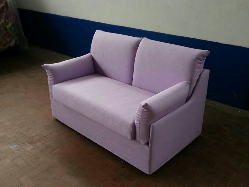 Divano di poca profondità adatto per gli spazi angusti,fattibile su misura in larghezza ed altezza Completamente sfoderabile,disponibile in qualunque rivestimento