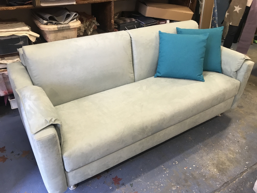 Divano letto con una rete speciale sollevata da terra di 13 cm tramite eleganti piedi in acciaio Sistema pronto letto richiudibile con il letto già fatto e materasso alto 13 cm Completamente smontabile e sfoderabile,disponibili in qualunque tipologia di rivestimento Produzione totalmente su misura